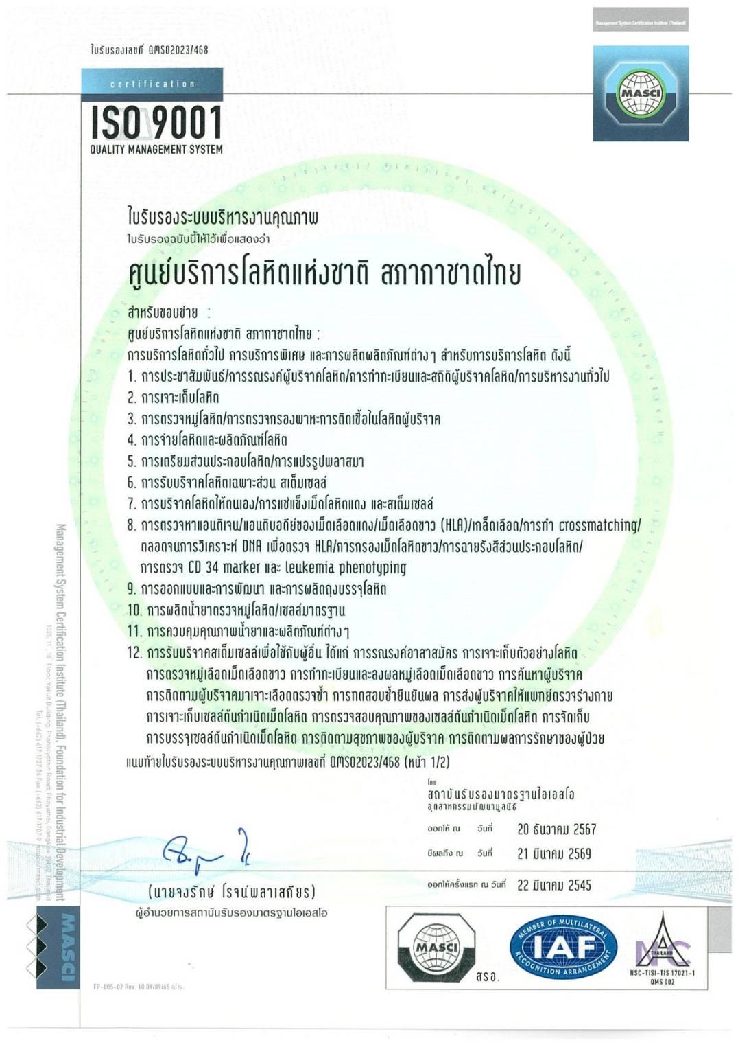 ใบรับรองระบบบริหารงานคุณภาพ ISO 9001 : 2015