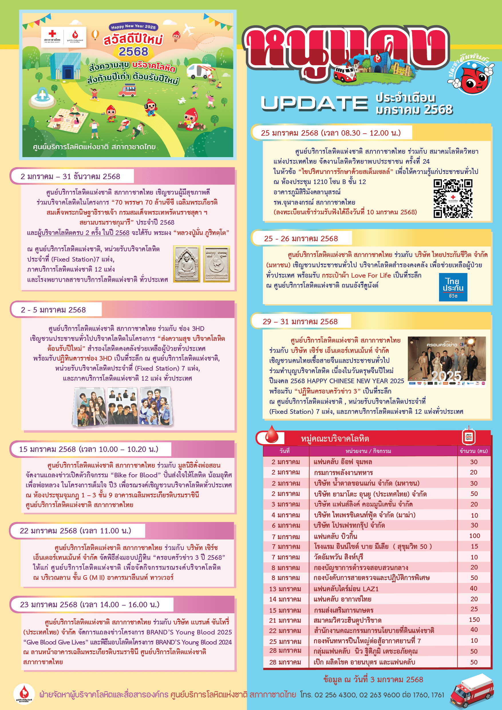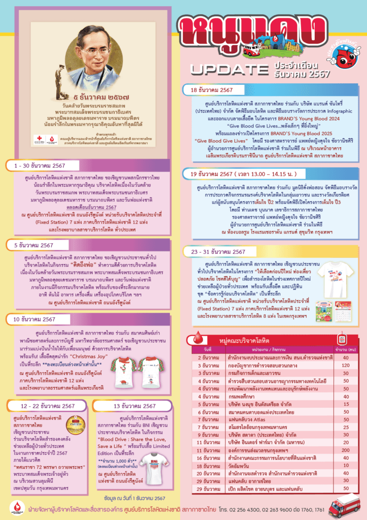ตั้งแต่เดือนมกราคม – ธันวาคม 2567 เพื่อช่วยเหลือผู้ที่มีความจำเป็นต้องรับโลหิตในการรักษาโรค