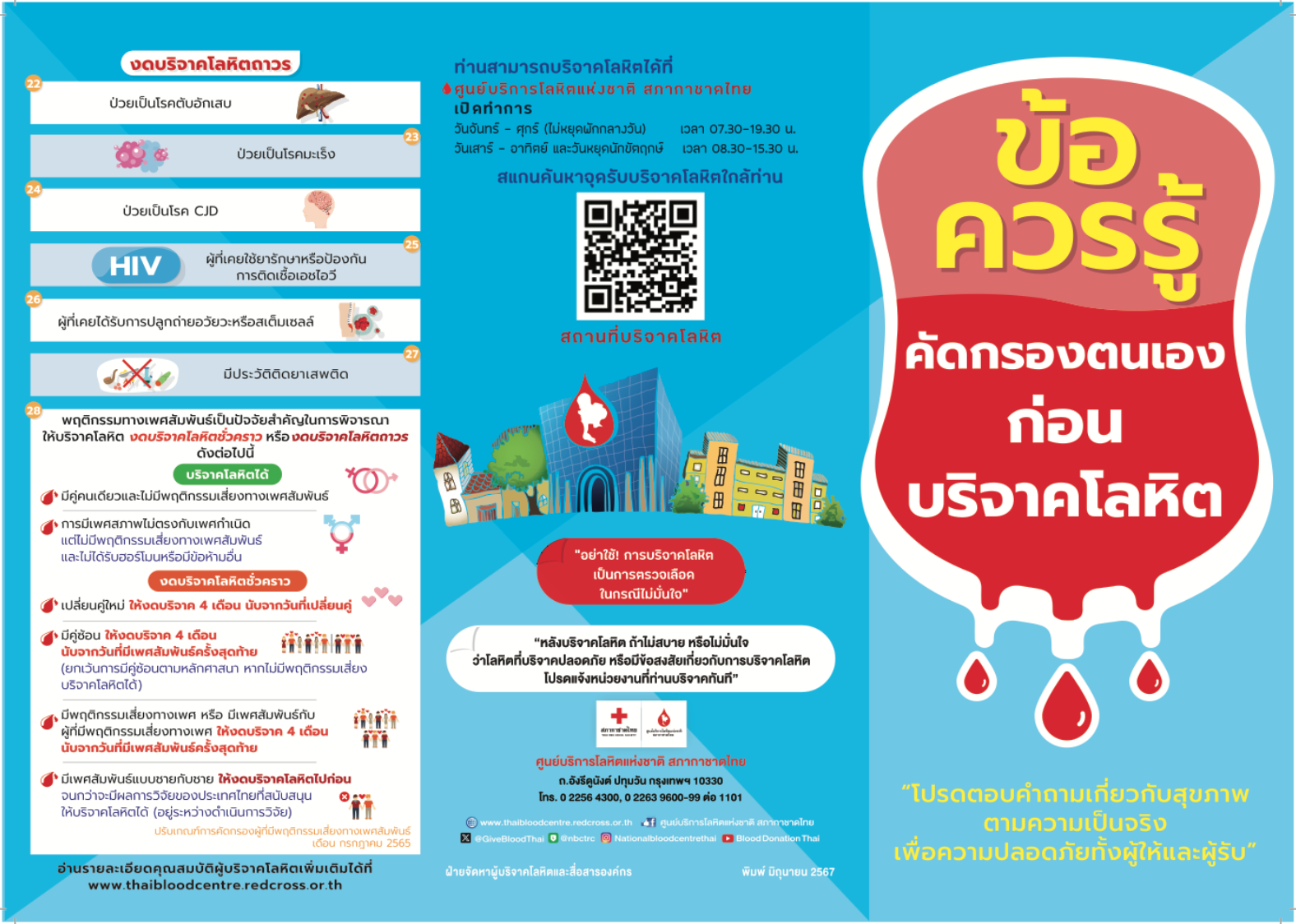 แผ่นพับ ข้อควรรู้คัดกรองตนเองก่อนบริจาคโลหิต